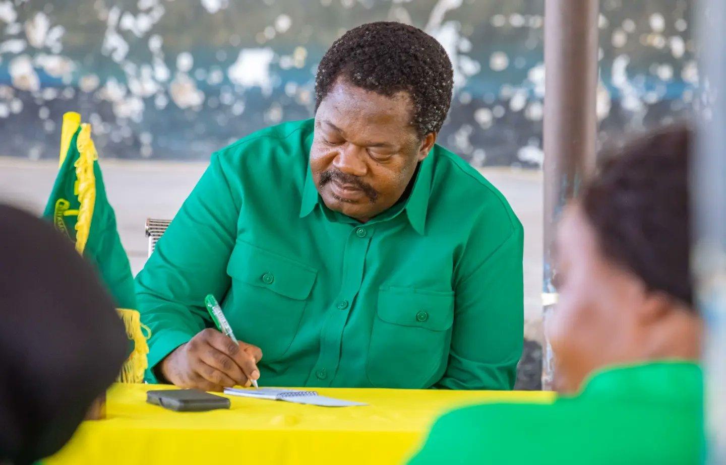 The NEC Ideology, Propaganda and Training Secretary Comrade Amos Makalla greets and is congratulated by various members of the CCM National Central Committeeimmediately after being unanimously elected by the Central Committee members as the NEC Ideology, Propaganda and Training Secretary on 3 April 2024 in the city of Dar es Salaam.