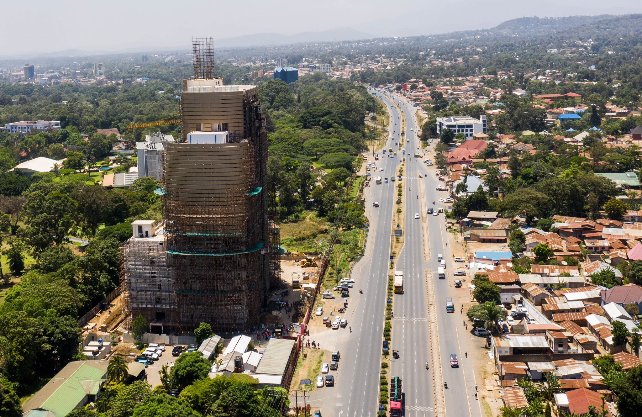 View of the Headquarters Building of the African Postal Union (PAPU) under construction in Arusha.