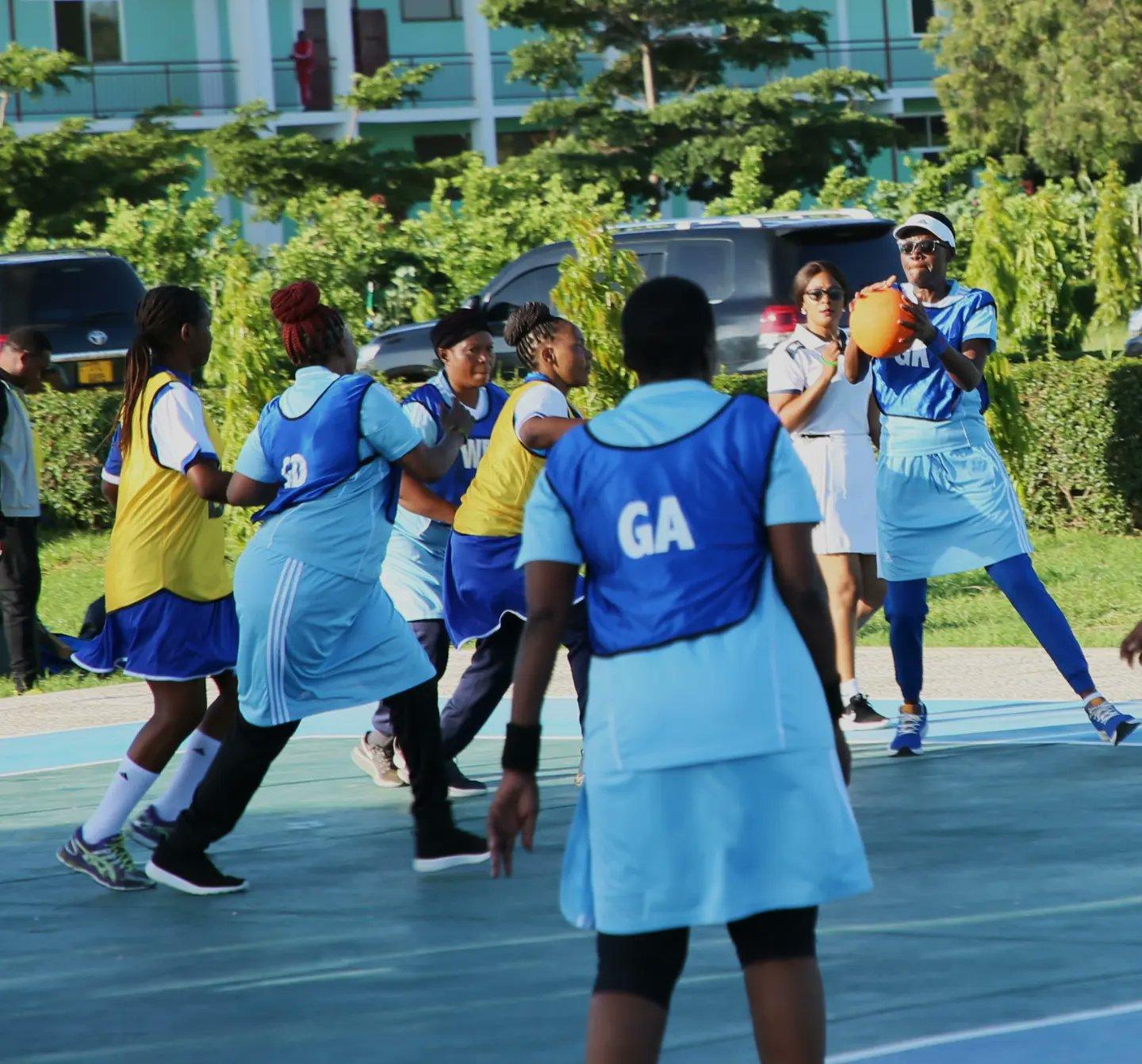 Timu ya Mpira wa Pete (Netball) ya Waheshimiwa wa Bunge ikicheza na Timu ya Watumishi wa Bunge wakati wa Bonanza la kimichezo la Bunge ambalo limefanyika leo Jijini Dodoma.- 1