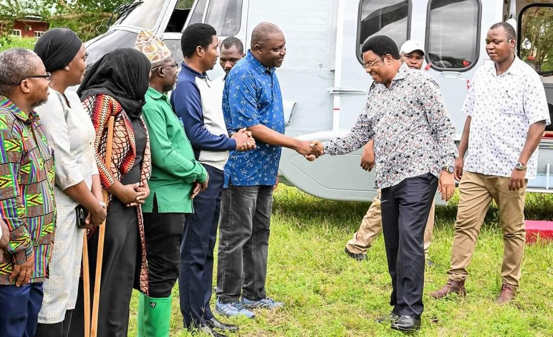 The Deputy Minister in the Office of the Vice President (Union and Environment) Hon. Khamis Hamza Khamis visited and inspected the flood affected areas in Muhoro village,Rufiji district in the Coast region and offered moral support to the people affected by the floods.- 1