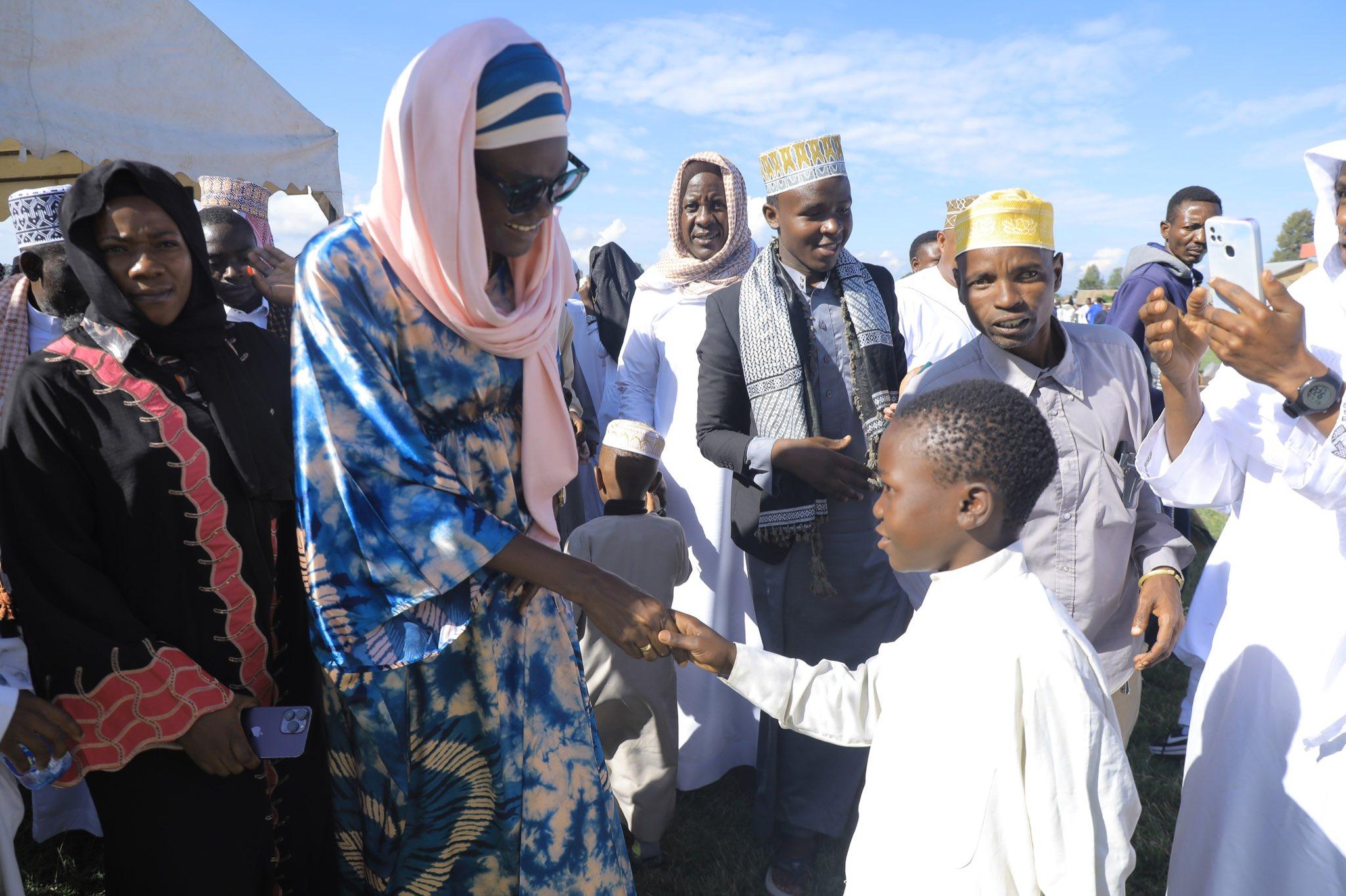 The Speaker of the Parliament of the United Republic of Tanzania, who is also the Member of Parliament for Mbeya City, Hon. Dr Tulia Ackson,has joined various Islamic faithful in Mbeya City for a special Eid Al-Fitr service at Sokoine Stadium today, 10 April 2024.- 1